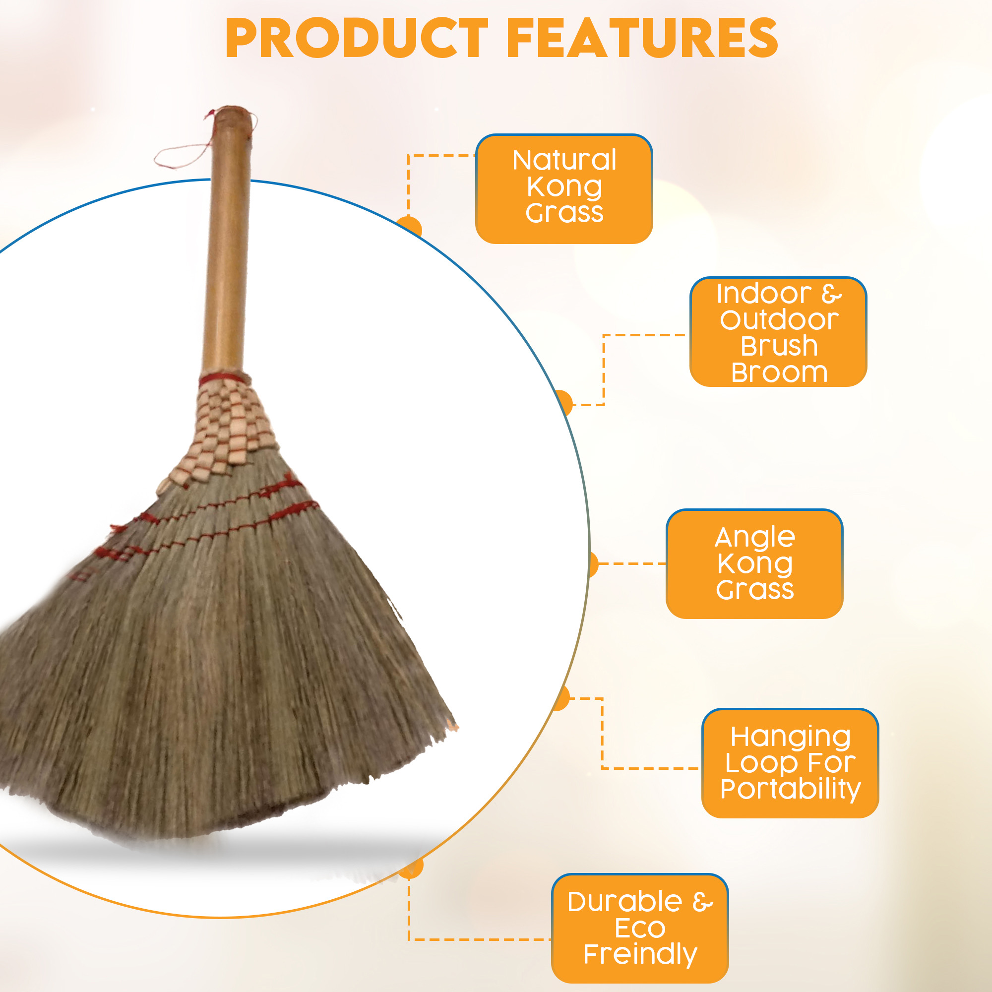 • Eco-Friendly Materials: Made from Kong grass, dry banana leaves, and nylon thread, these brooms are environmentally friendly and non-toxic.