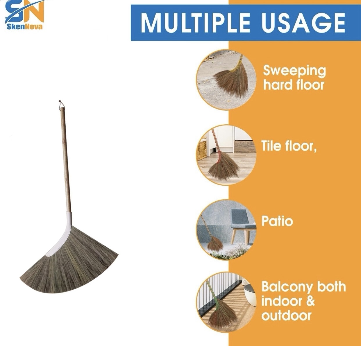 Ideal for both household and commercial use, the SkenNova broom combines practical functionality with timeless craftsmanship, making it a must-have for those who appreciate quality and sustainability in their everyday products.