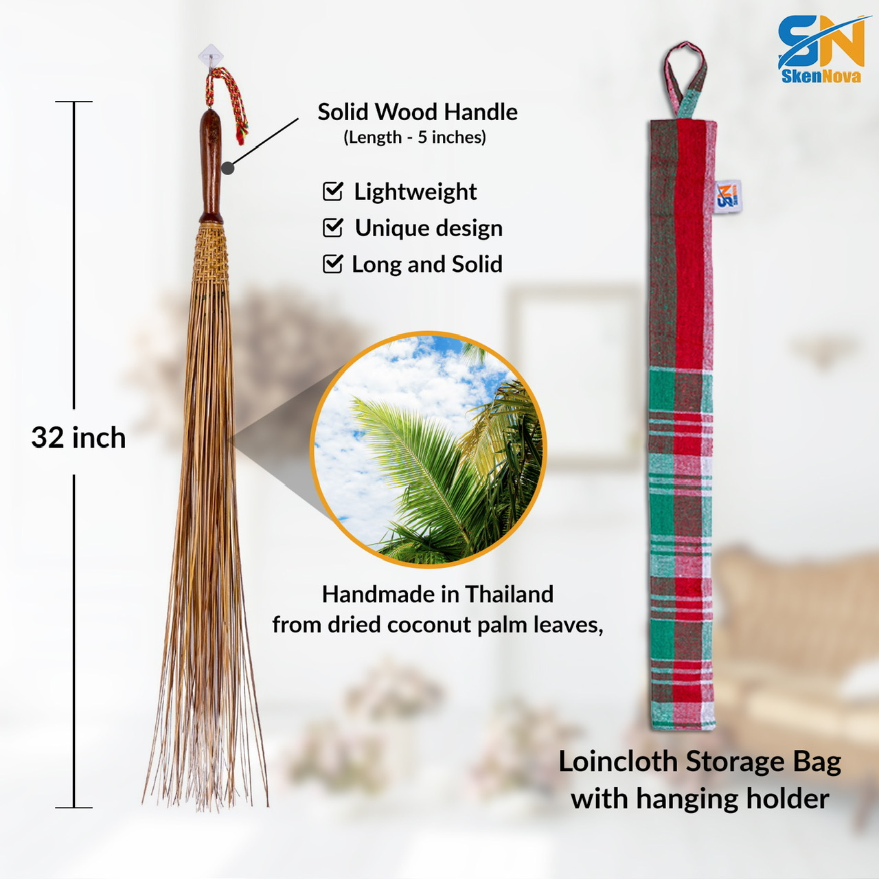 Experience the durability and efficiency of our Handmade Coconut Leaf Stick Hand Broom, designed for tough cleaning tasks. Measuring 32 inches, this hand broom features a sturdy solid wood handle that provides a comfortable grip for easy maneuverability during sweeping. The broom head is crafted from natural coconut leaves, offering excellent strength and flexibility to sweep away dirt, dust, and debris from a variety of surfaces.