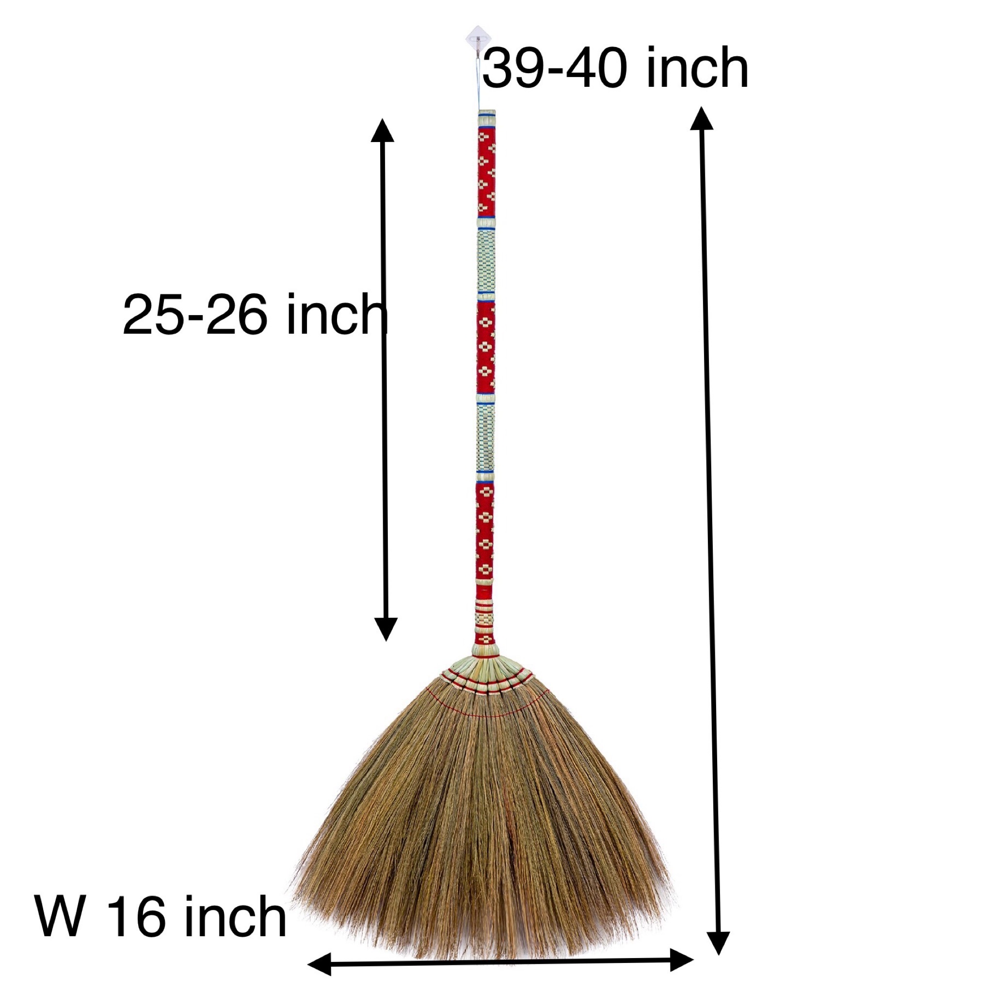 Introducing our exquisite handmade Natural Grass Broom, meticulously crafted with traditional Thai patterns woven into its design using high-quality nylon thread. Each broom boasts a length of 40 inches, providing optimal reach and efficiency for your cleaning needs. The bamboo stick ensures durability and sturdiness, while the intricate embroidery adds a touch of elegance to your home.