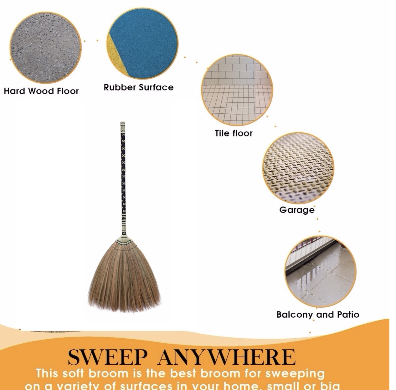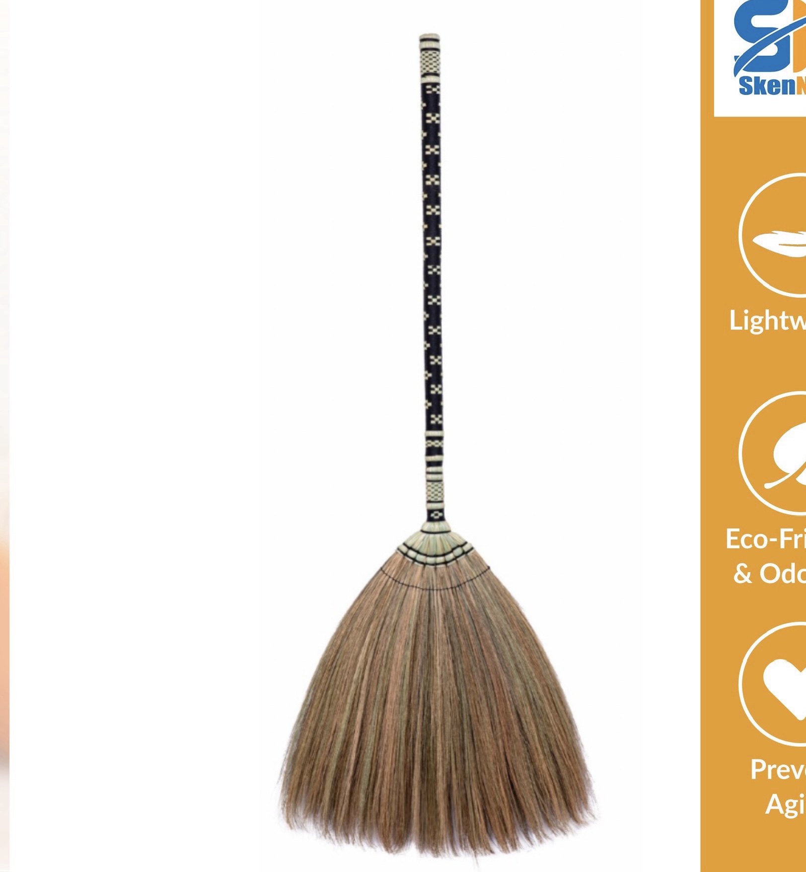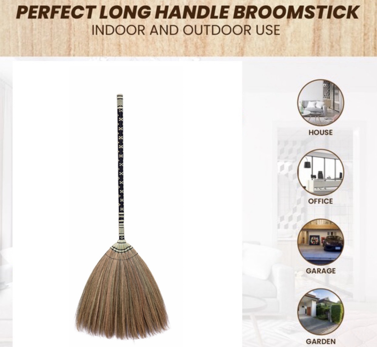ntroducing our exquisite handmade Natural Grass Broom, meticulously crafted with traditional Thai patterns woven into its design using high-quality nylon thread. Each broom boasts a length of 40 inches, providing optimal reach and efficiency for your cleaning needs. The bamboo stick ensures durability and sturdiness, while the intricate embroidery adds a touch of elegance to your home.