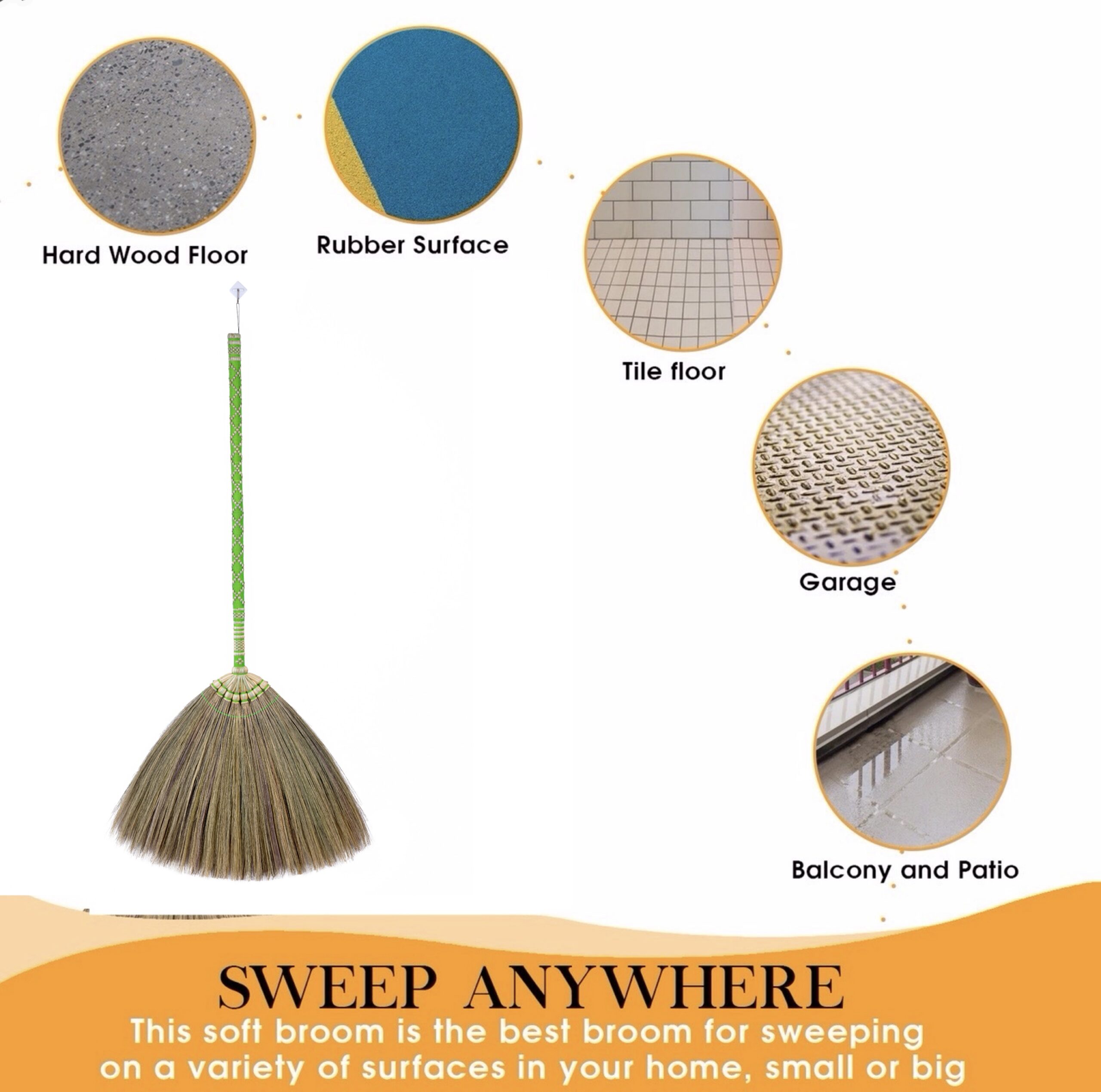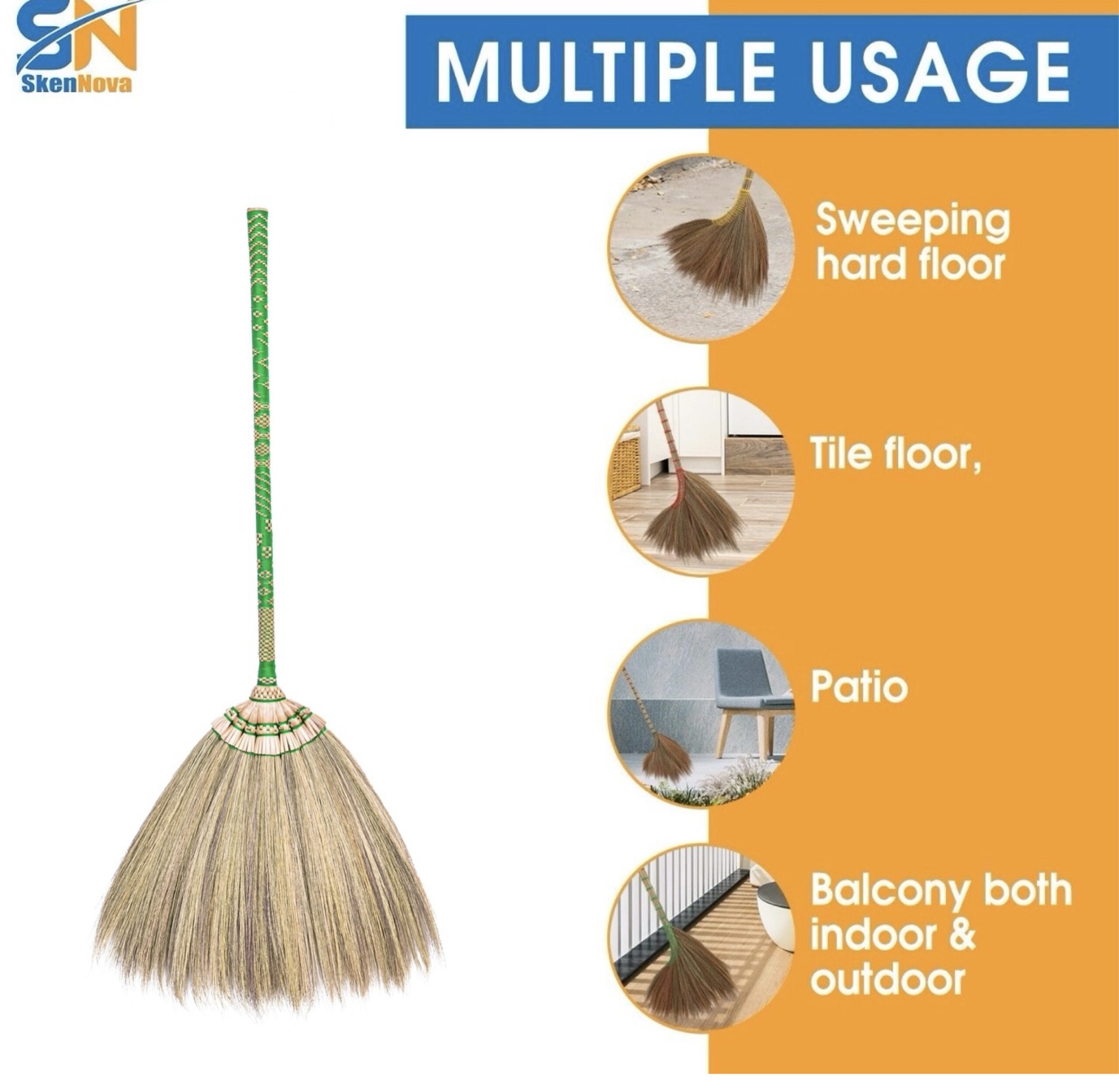 • Natural Materials: Constructed from sustainably sourced natural grass fibers and a sturdy bamboo handle, offering durability and an eco-friendly cleaning solution.