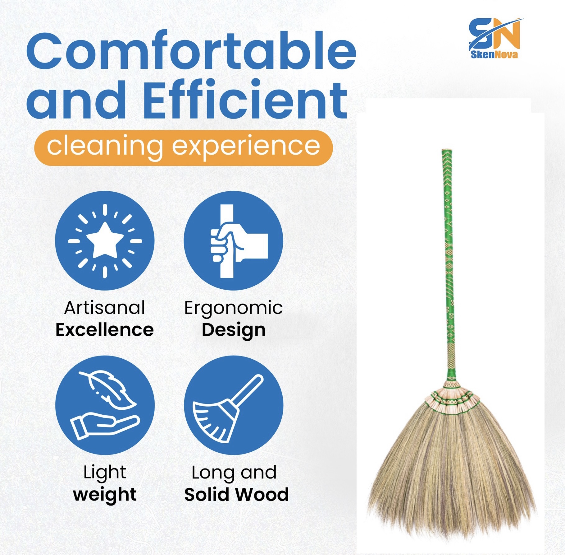 • Handcrafted Quality: Each broom is meticulously handmade by skilled artisans, ensuring superior quality and unique craftsmanship that stands out from mass-produced alternatives.