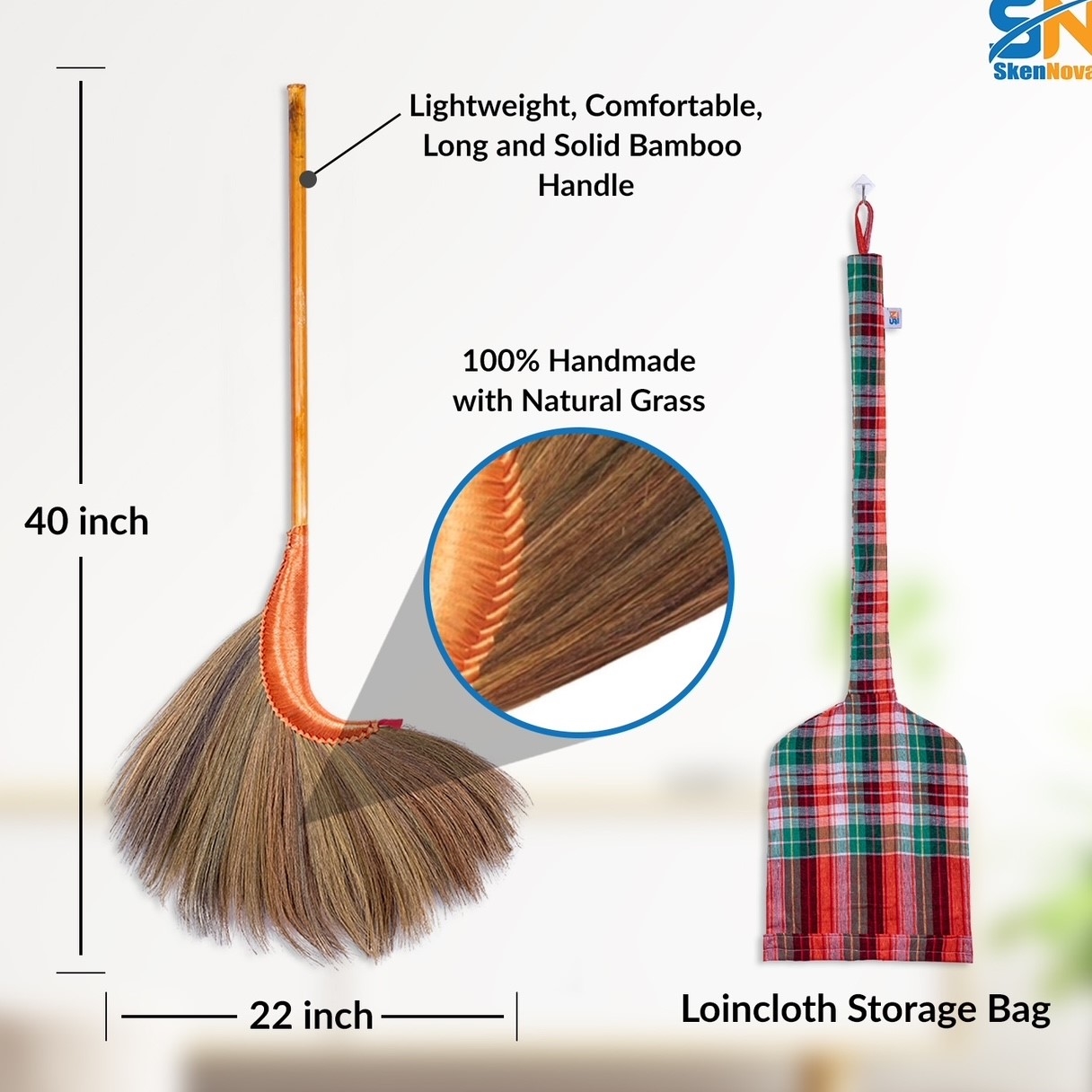 To enhance its functionality and convenience, we include a special storage bag made from high-quality loincloth fabric cotton. This unique bag adds a touch of elegance while providing a convenient way to store and transport your broom.