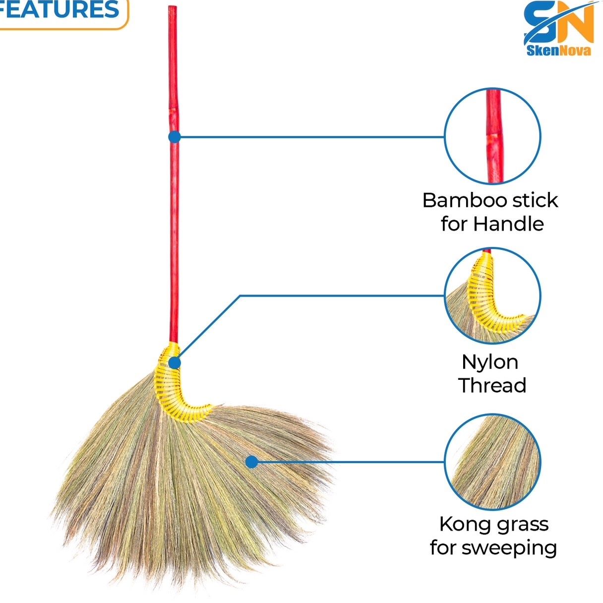 Each broom is meticulously crafted using natural grass, ensuring durability and effectiveness in sweeping away dust, dirt, and debris. The traditional design of this broom makes it not only a practical cleaning tool but also a beautiful decorative piece for your home.
