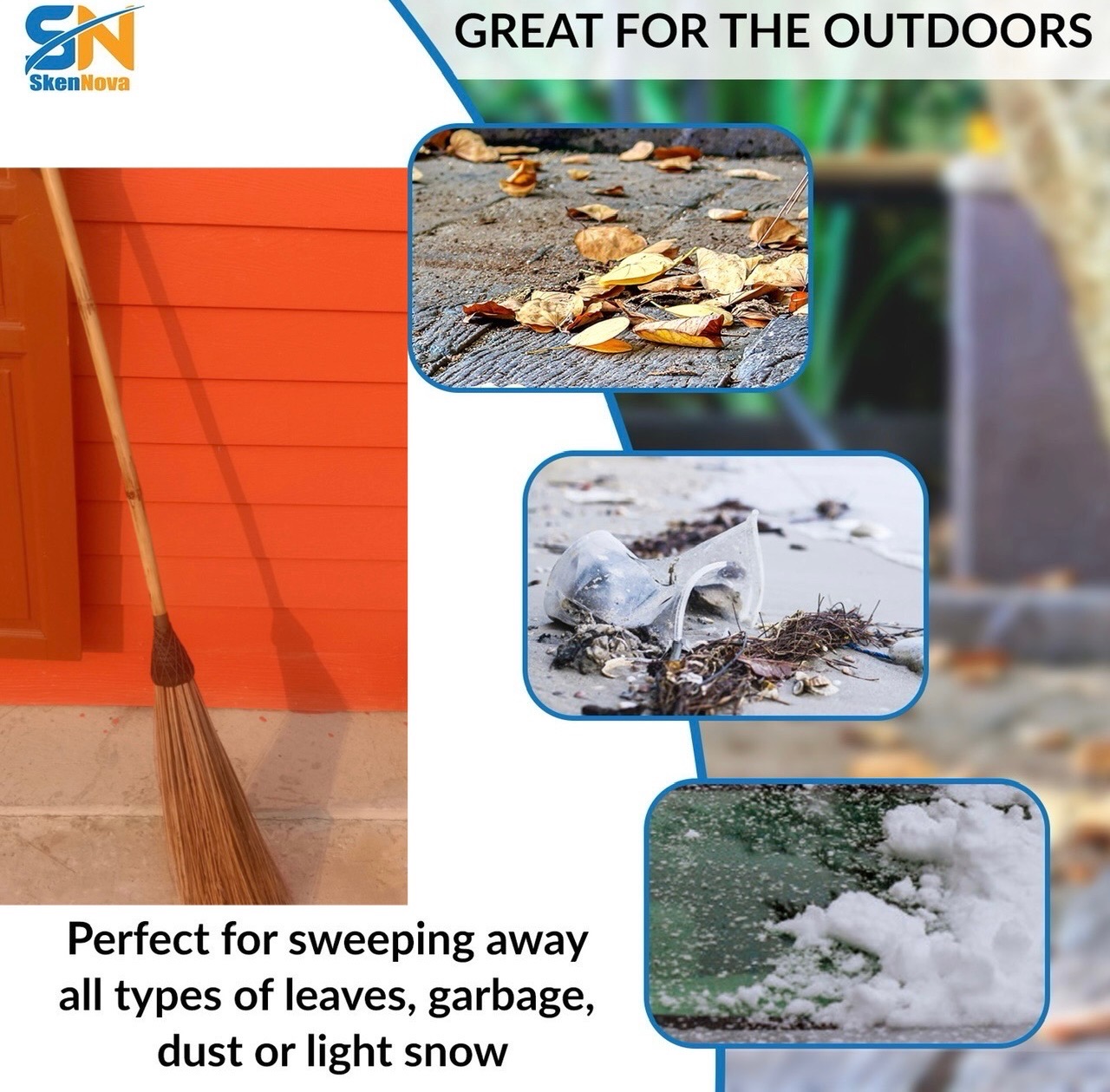 This broom is perfect for a variety of outdoor applications. Use it on your patio, driveway, garden, or any other outdoor area that requires regular maintenance. Its versatile design makes it suitable for sweeping up leaves in the fall, clearing away debris, and even managing light snow during the winter months.