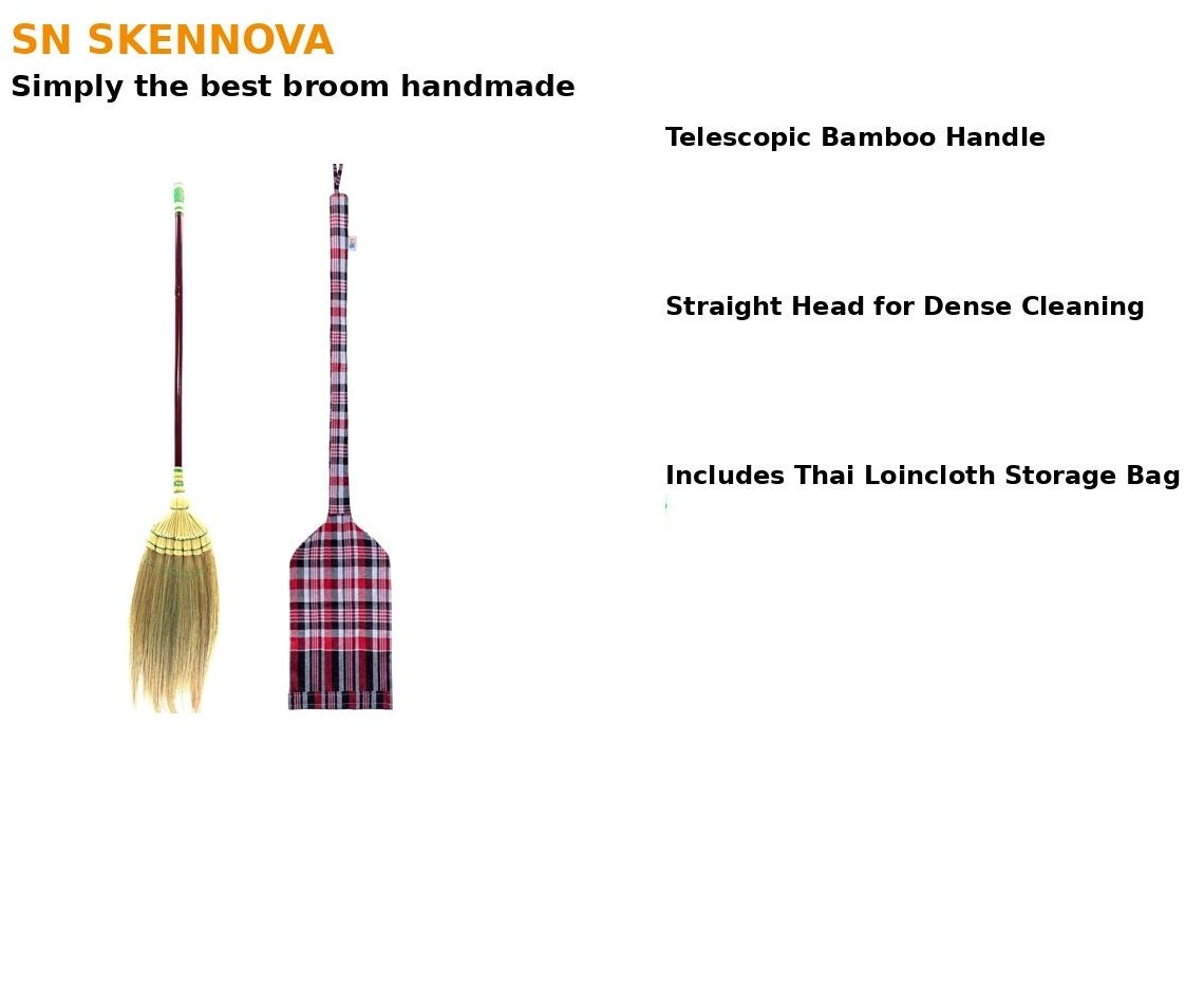 Experience premium sweeping performance with the SN SKENNOVA™ handmade broom crafted from natural Kong grass. This eco-friendly broom features a bamboo handle wrapped in a deep-red telescopic plastic sheath, adding both durability and style. Ideal for indoor and outdoor use, it comes with a colorful Thai loincloth storage bag to protect and preserve your broom’s quality.