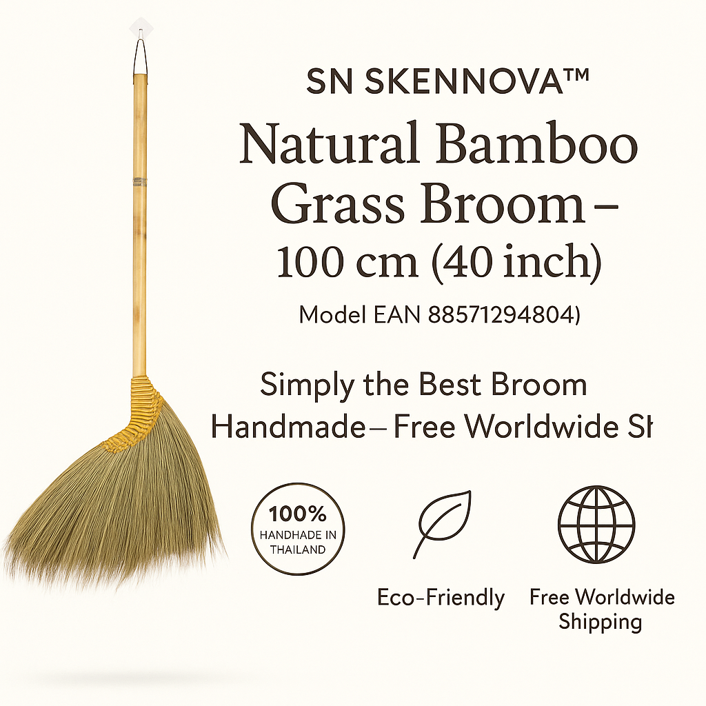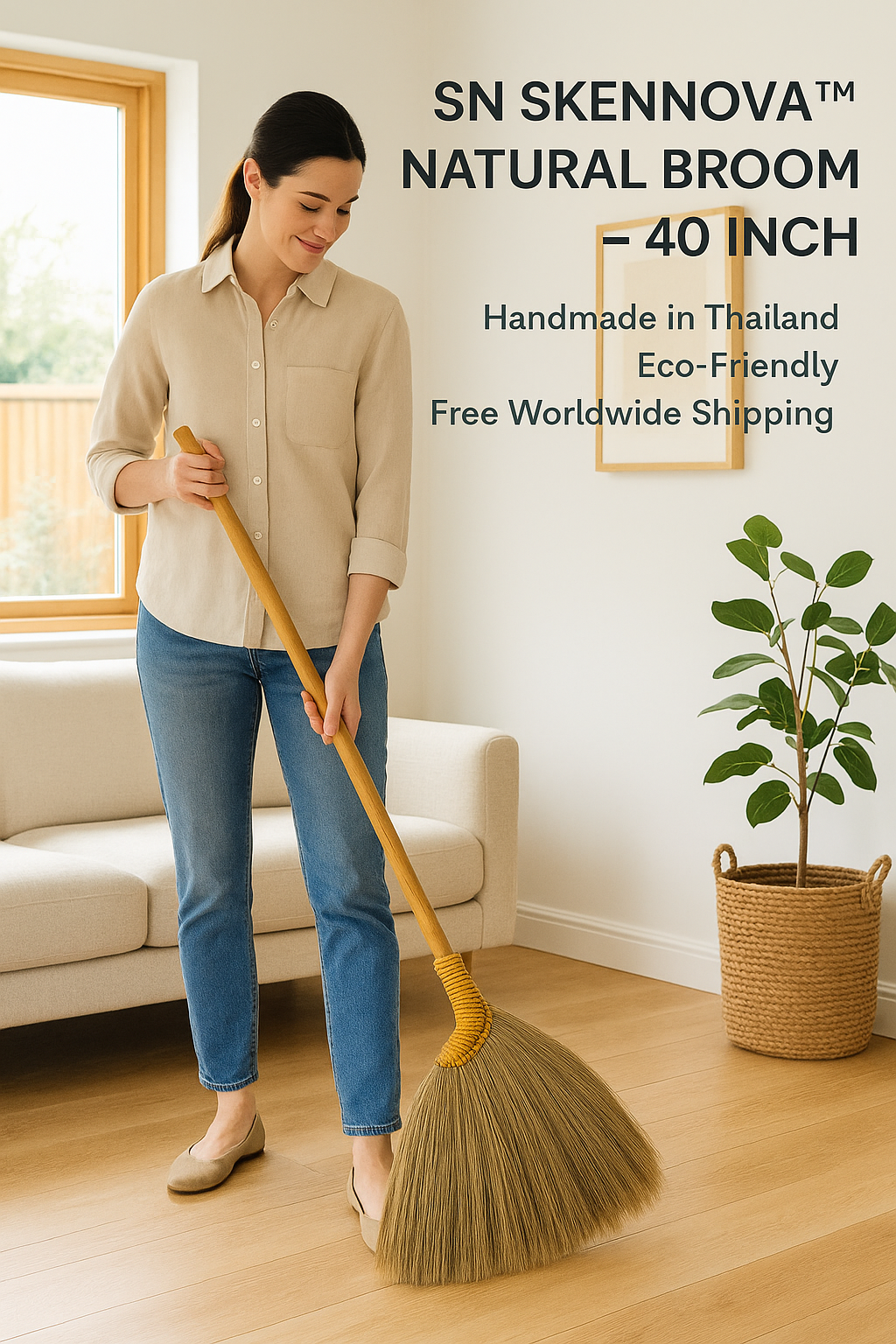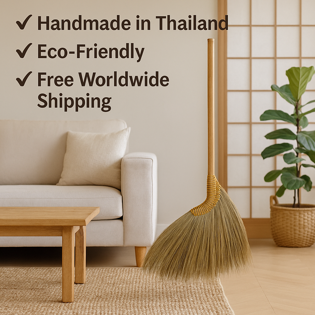 Sweep in style with our 100% natural Thai broom, handcrafted with care using durable bamboo handles and finely tied natural grass. Designed to complement eco-conscious homes, this lightweight yet powerful broom is ideal for smooth and dry surfaces—indoor or out.